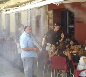 Im SOMMER senkt ein Hochdruck Luftbefeuchter oder Luftbefeuchtungssystem die Temperatur und erhöht somit die Produktivität und Stimmung der Mitarbeiter in den Werkstätten. Die Verwendung solcher Systeme auf den Caféterrassen senken die Temperatur, und in der selben Zeit erhöhen den Absatz.